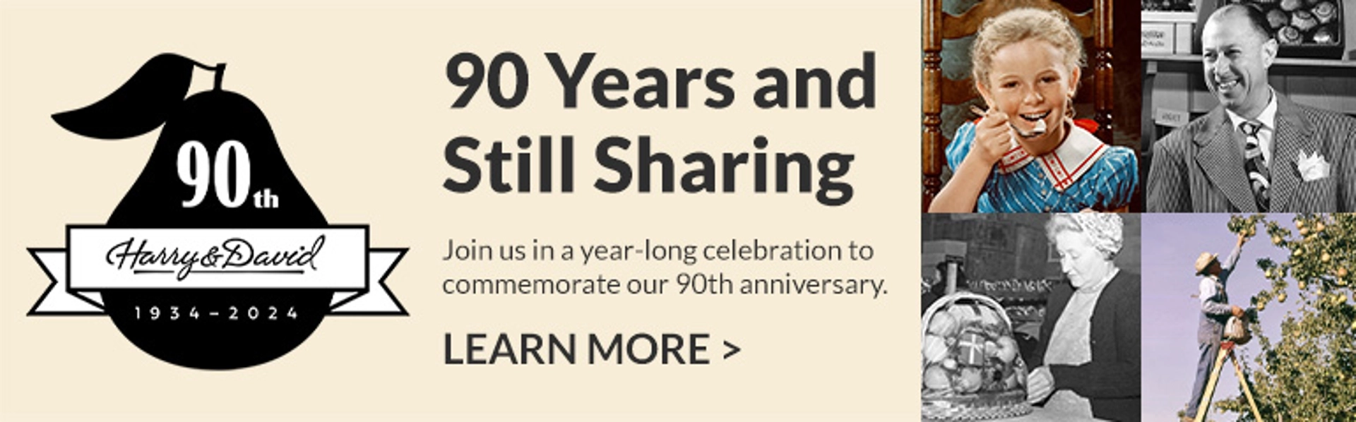 After cultivating the now-belovedRoyal Riviera® Pear, the brothers successfully marketed this wonderful fruit to high-end sellers across the United States and Europe in the 1920s. Unfortunately, the stock market crash of 1930 and the Great Depression hit the business hard. However, the brothers did not let that keep them down. During what he thought was a fruitless trip to New York trying to introduce the city’s movers and shakers to their pears, Harry came up with an idea. He sent boxes of the pears to New York’s captains of industry, along with letters encouraging them to sample the fruit and then send a box as a gift to friends, colleagues, and clients. This move changed everything—Harry & David evolved from being a fruit company to aniconic gift company.