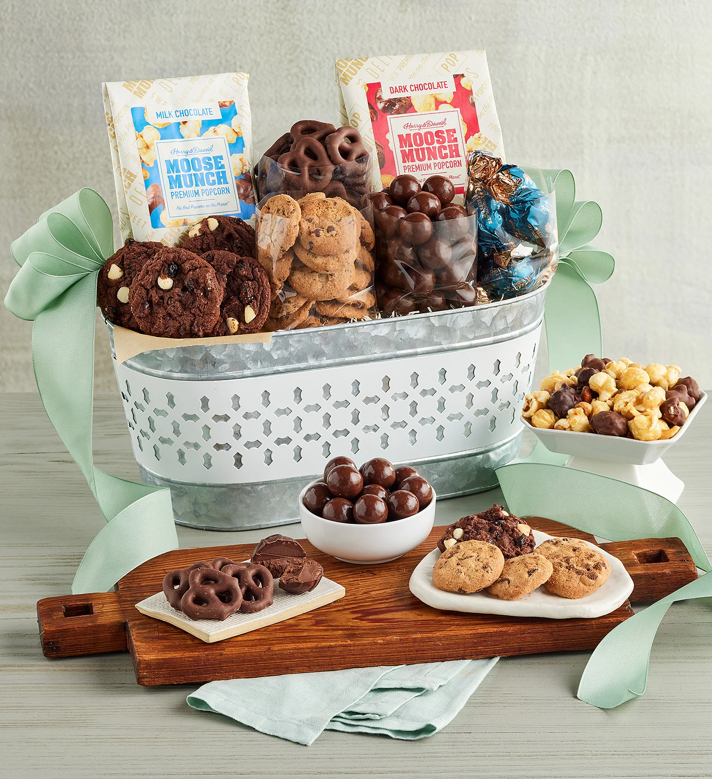 Thisgift basketis what happens when Willy Wonka goes to Medford, Oregon, and creates a basket filled with thefinest chocolates. This basket is also your lucky one as no golden ticket is needed to partake in seven different chocolate treats.These chocolatesare so good, a Whangdoodle would eat 10 of these baskets for breakfast and come galloping back for a second helping.